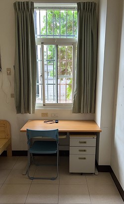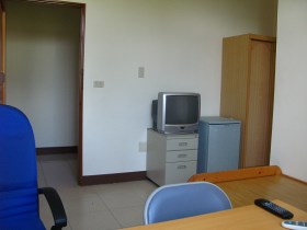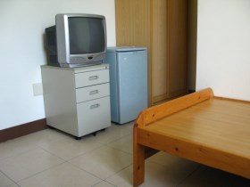 傢俱齊全(床、衣櫃、置物櫃、書桌)。 冷氣、數位電視、T1網路線、冰箱、電熱水器。 一應俱全、一卡皮箱入住。