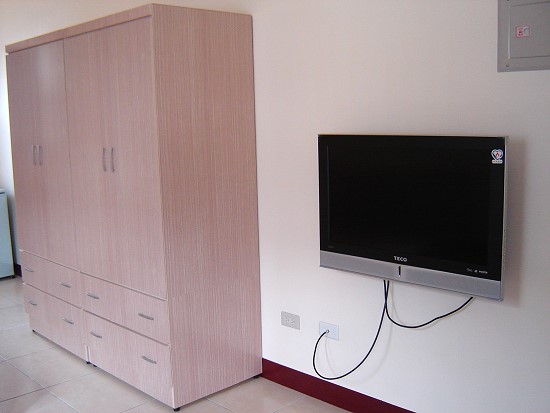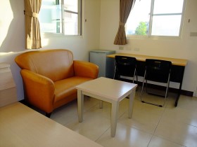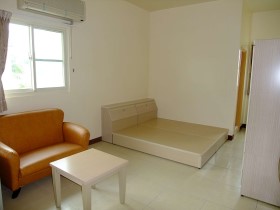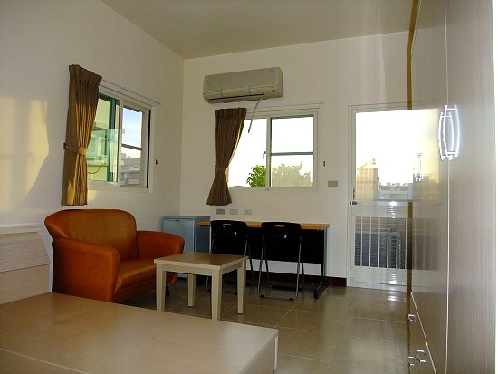 雙人套房(單人也可承租)全新9坪, 數位電視、分離式冷氣、鮮綠冰箱和成牌電熱水器、高格調沙發、優雅的茶几、晶片卡安全鎖、監視器 ,專人打掃公共區域…等。